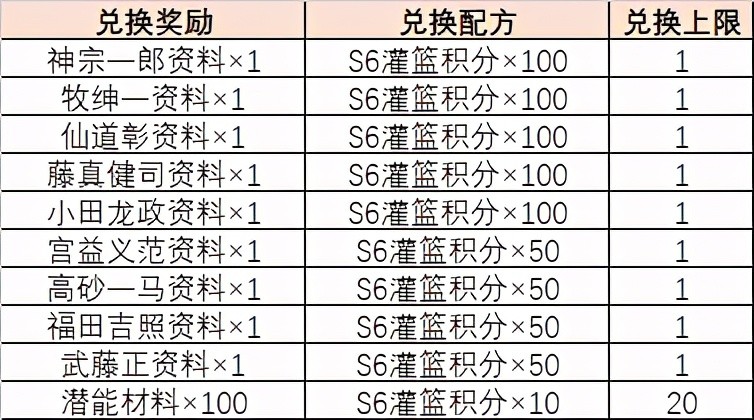 其中大家还是遵守缺什么、喜欢什么就可以去换什么的原则,已经有了资料的球员会自动变成5张大头卡,大家注意。(如果新赛季你的结算段位是明星段位,那么你可以直接获得40点的S6灌篮积分)