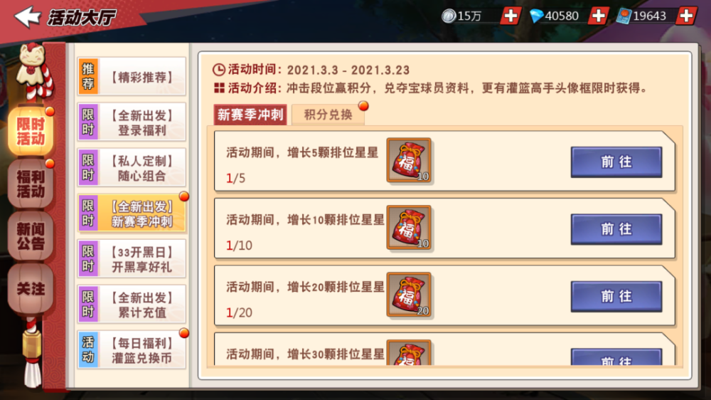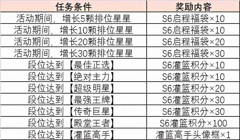 然后是这个新赛季冲刺的活动,奖励明细如下: