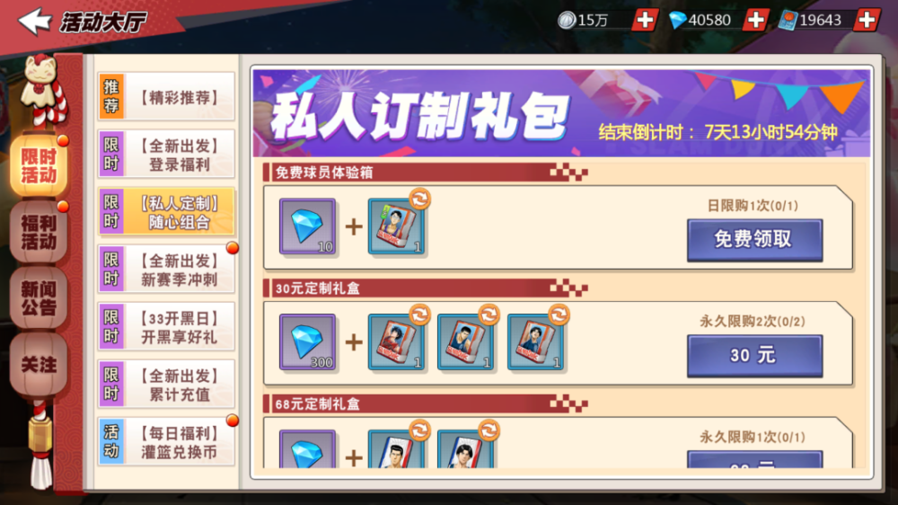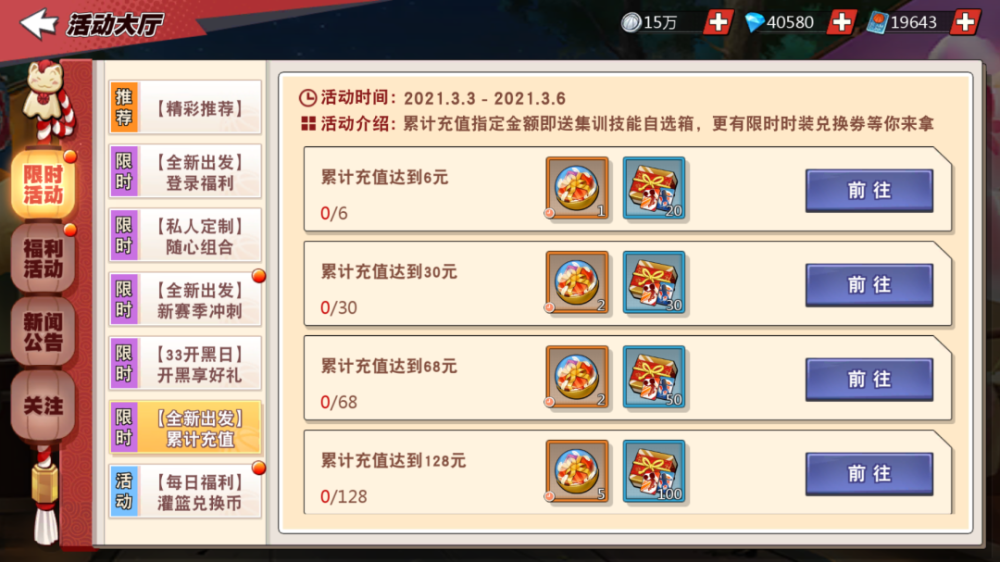 然后就是百年不变的充值活动,这次的充值活动明细如下: