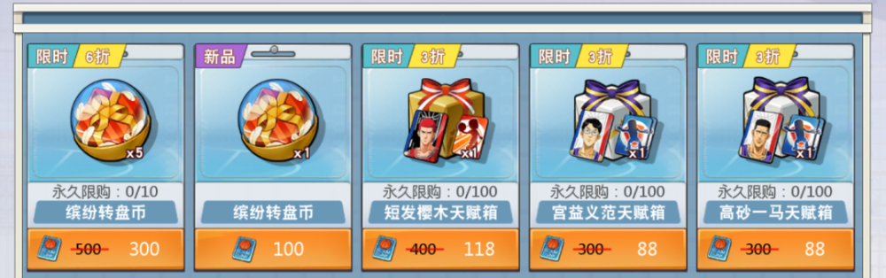 另外针对商城中用点券购买的转盘币,每300点券可以购买5枚转盘币,限购10个,也就是3000点券(差不多300元)可以换50个转盘币,按照刚刚维一的抽取几率也就是差不多可以获得35张限时皮肤券,加上钻石获得的19张共计54张(可以换些什么可以参考下图),因此大家可以用这个维一推断出的数据做个不完全的参考,当然有些脸白的玩家朋友可以无视这个数据。