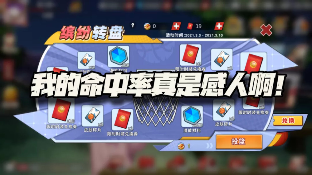 理论上每3抽会出一次限时皮肤券,但获得1张限时皮肤券的几率是真的高,喜欢新球衣的朋友来试试人品如何。