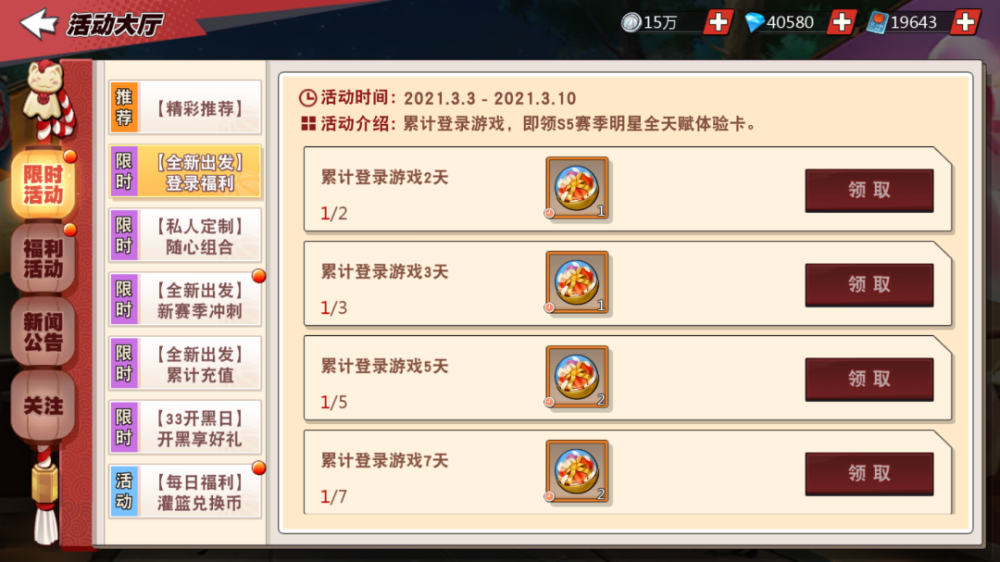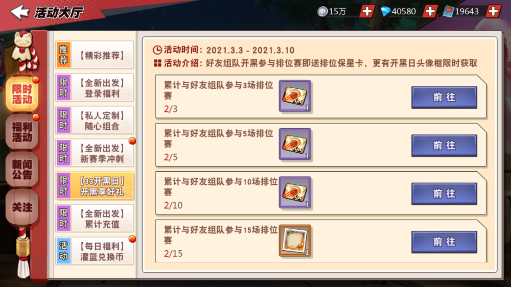 接下来的活动是这个与好友开黑的活动,奖励明细如下: