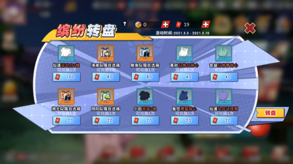 奖励主要是以转盘币和时装券为主: