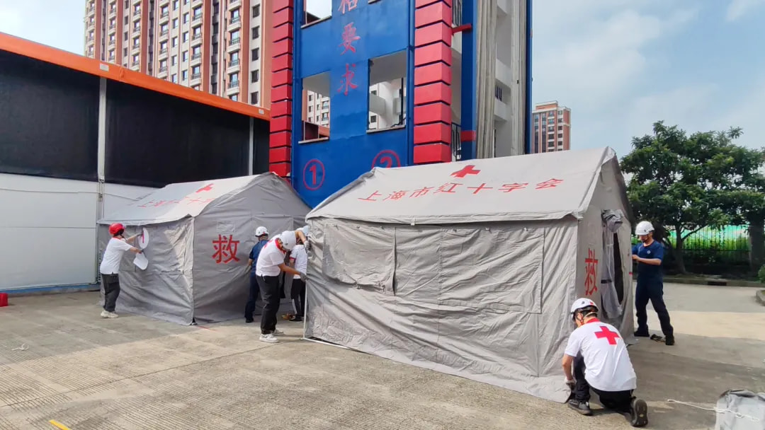 区红十字应急救援实战演练扣人心弦。演练模拟台风和暴雨引发的城区内涝、人员受困等灾害场景,围绕队伍快速集结、安置点搭建、人员疏散转移和应急救护等环节展开。