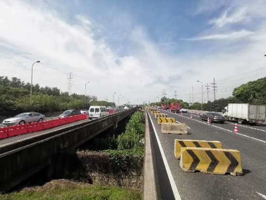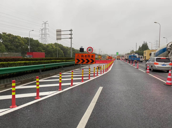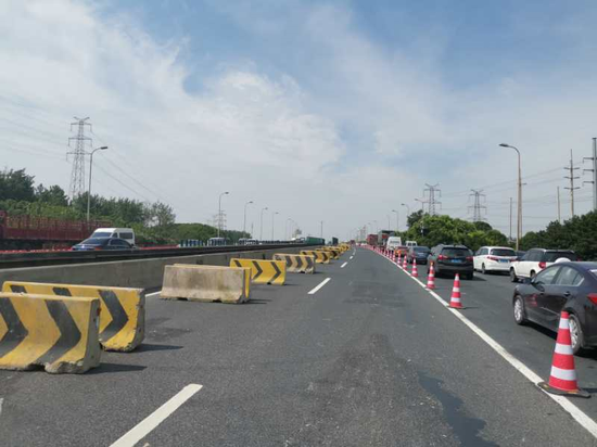 第一阶段:封闭S20沪宁沪杭铁路立交桥内圈方向1#、2#车道施工(工期约1个月)。外侧3#、4#车道正常通行。同时,外圈方向调整为“3+1”车道布置,内圈方向借1根车道到外圈道路通行,确保双向6车道(3来3去)。