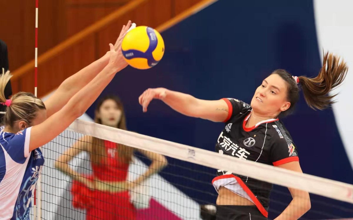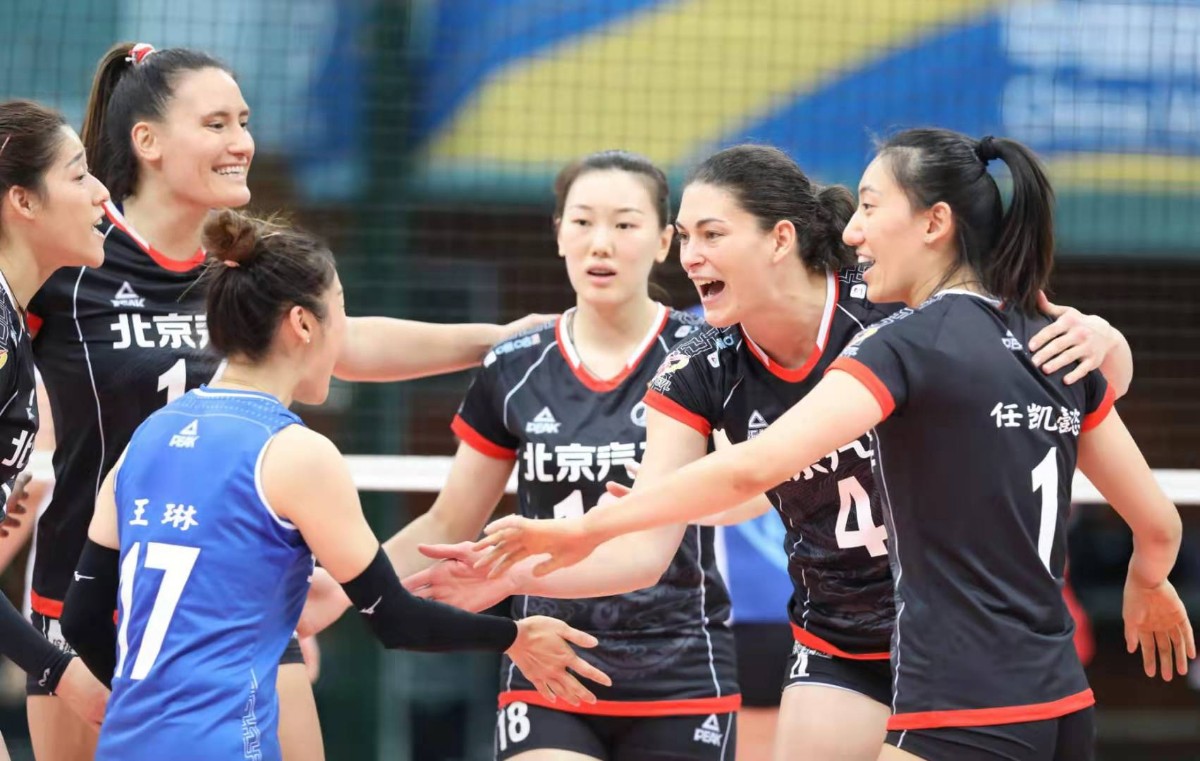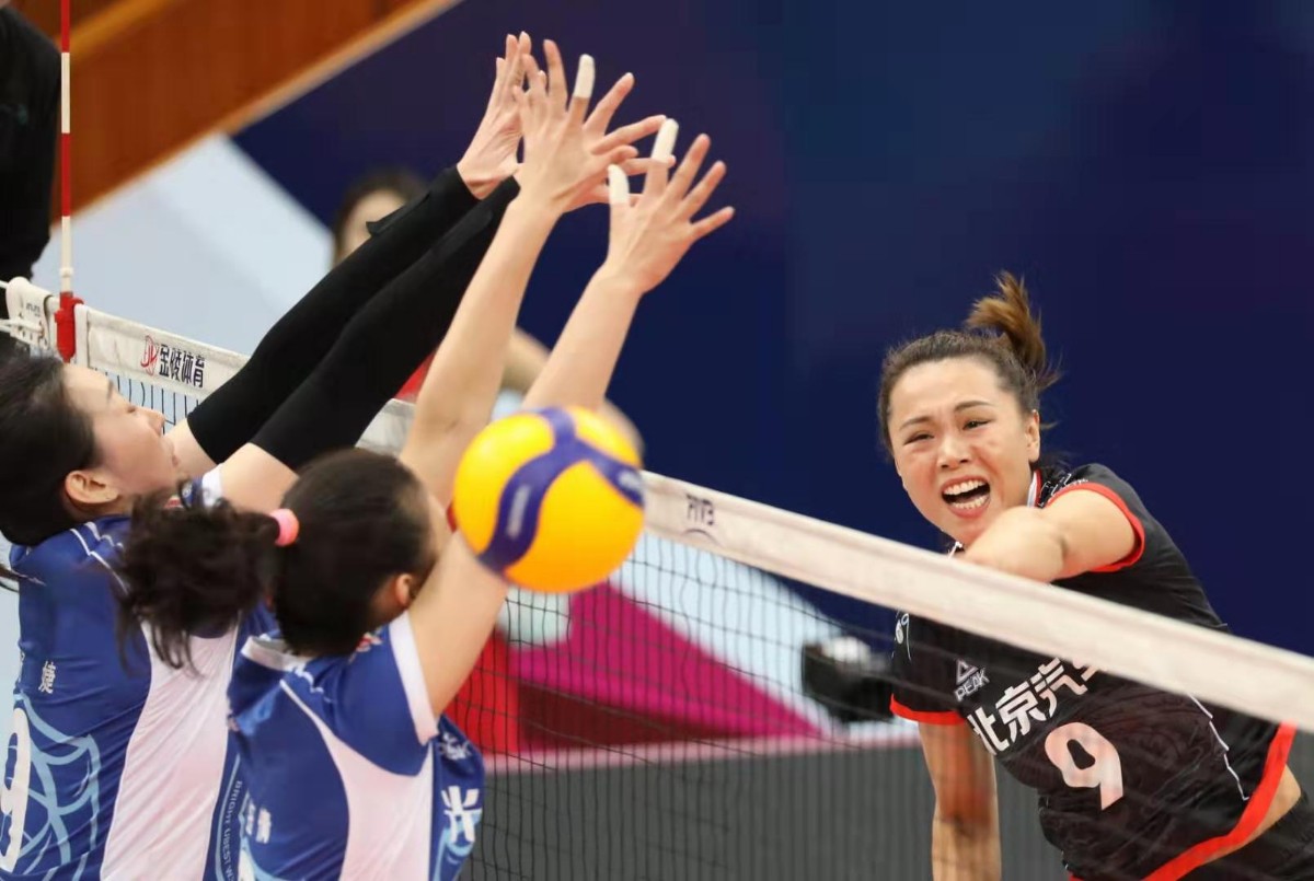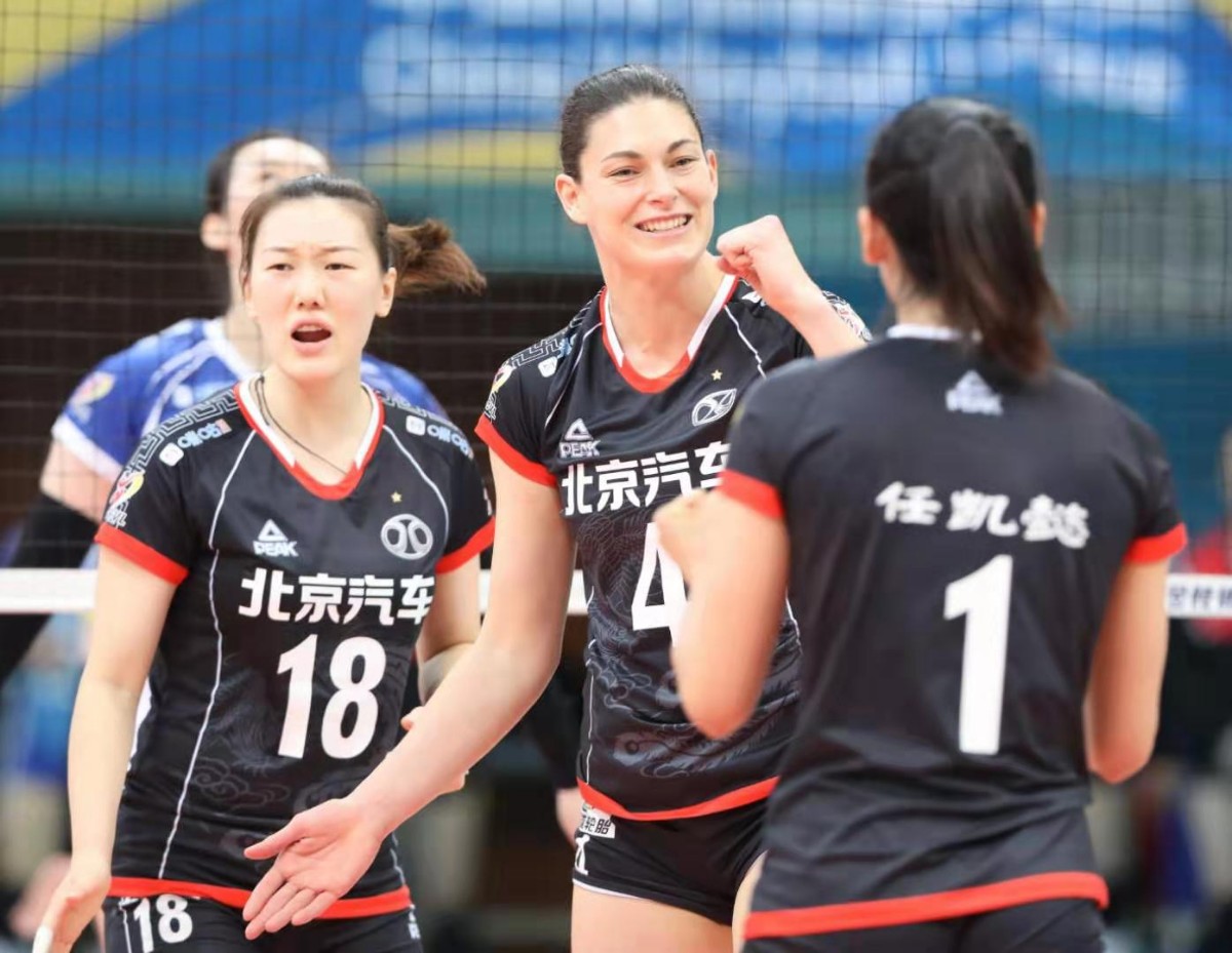 迪克森快攻奏凯,曾春蕾发球接连破攻,巴奇强攻开花,北汽女排以6比2领先。拉尔森进攻让上海队追至7比9,曾春蕾进攻以10比7领先,京沪两强进入拉锯战,每得1分都需要多回合较量。多回合攻防之中,蔡雅倩组织反击,刘晓彤后攻得手,北京队14比10领先。上海队利用反击追至13比15,不过北京队防守相当顽强,有效拦网出色,反击高效,从而以19比13领先。上海队用米杨和张磊换下卞雨倩和利普曼,试图改变一下节奏。然而,北京队四处开花,从而以23比15领先。拉尔森连续追分,张宇快攻以25比19取胜第三局,总比分2比1领先。