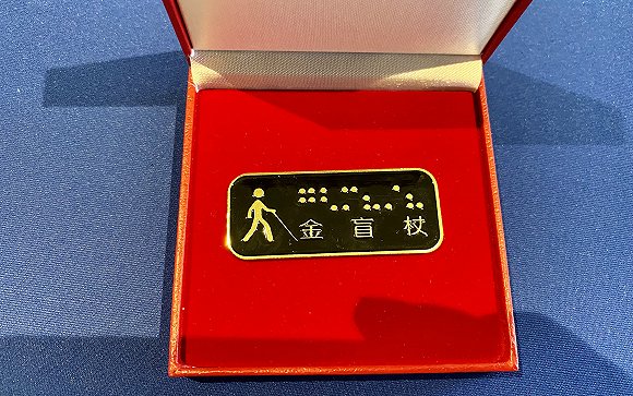 预科班结束时,每位营员都获得一枚勋章,盲文刻着“金盲杖”三字。摄影:黄景源