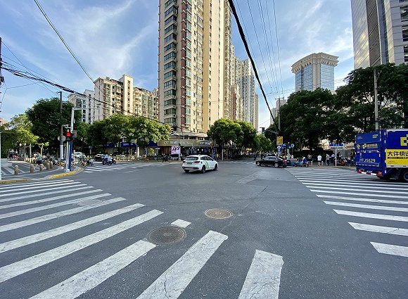 这是一条单行道,车流并不多,没有红绿灯。地铁三号线从马路上方的高架轨道飞驰而过,发出巨大的轰鸣声,这让她有点害怕。因为眼睛看不见,她非常依靠听觉。“我控制不住对巨大声音的恐惧”。