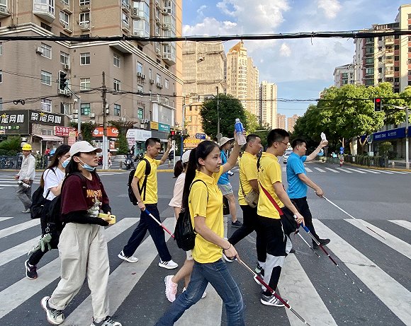 即使在上海这座拥有2400万常住人口的城市,也很难看到20位有视力障碍的年轻人集体出现在大街上。他们小心翼翼,一步一步探索自己的行动空间。