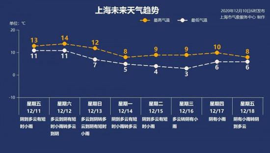 周后期申城以阴到多云天气为主,伴有短时小雨,气温起伏不大,在11~14℃。