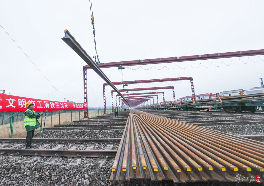 昨天,伴随着机车的鸣笛声,一列满载500米长钢轨的长轨列车顺利抵达中铁二十四局上海机场联络线长钢轨存轨基地,为即将到来的铺轨施工打下坚实基础。据悉,长钢轨铺轨作业预计于12月下旬正式启动。