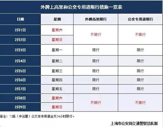 驾驶员注意啦!据市公安局交警总队消息,2月3日至7日,外牌在本市高架、公交专用道限行。2月1-2日、8-9日外牌高架、公交专用道不限行。警方提醒:防疫期间,减少外出!详见↓