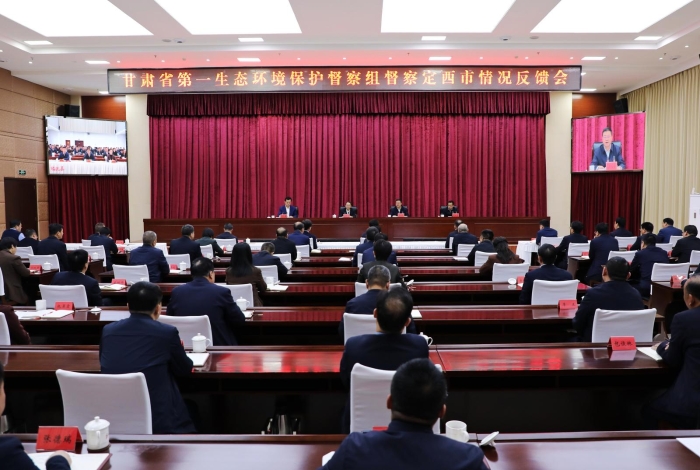3月27日上午,甘肃省第一生态环境保护督察组督察定西市情况反馈会议召开。省第一生态环境保护督察组组长周剑平通报督察情况。市委书记汪尚学作表态发言。